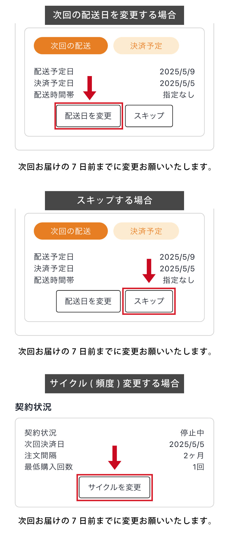 次回お届けの7日前までに